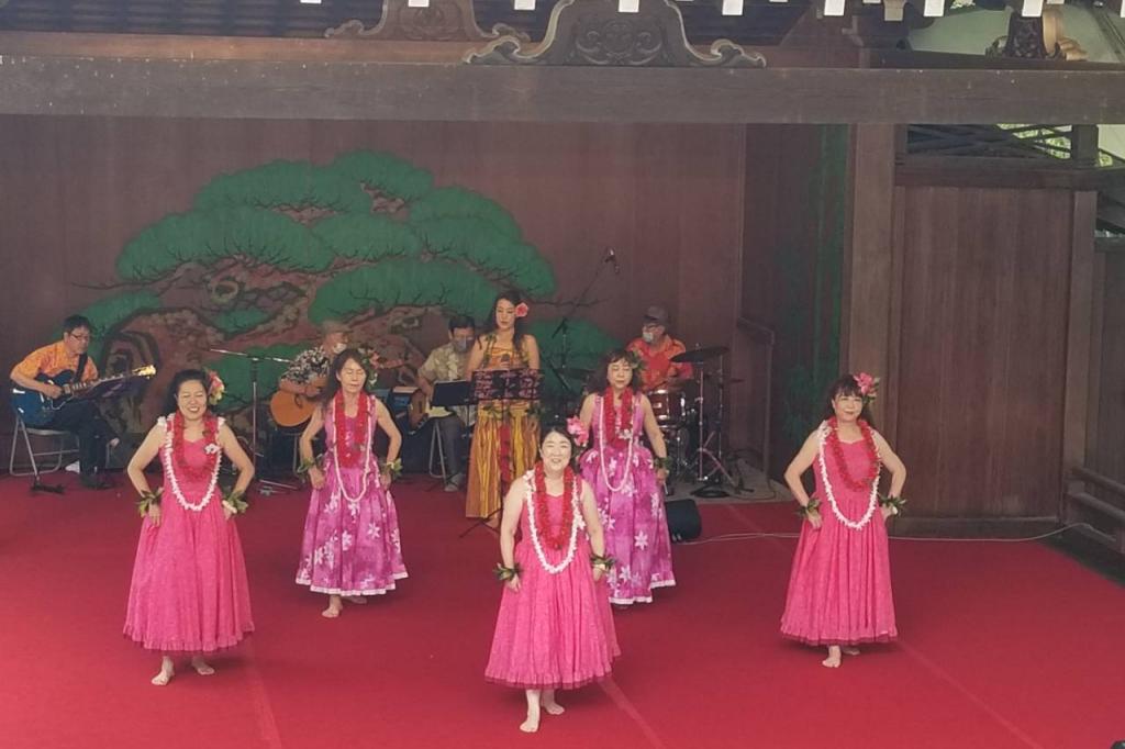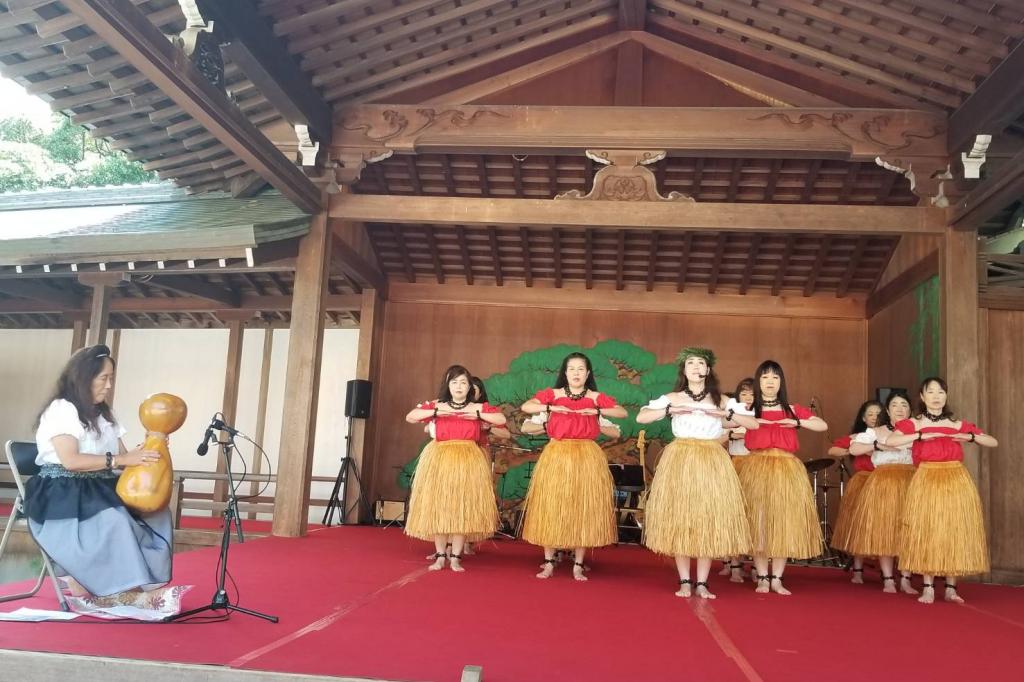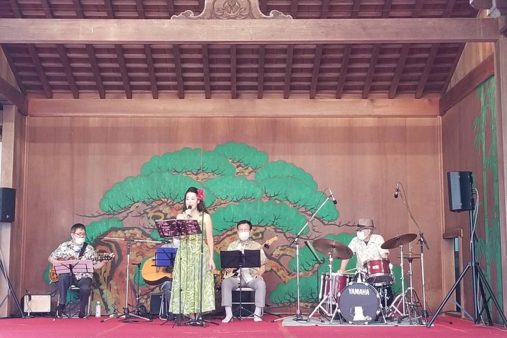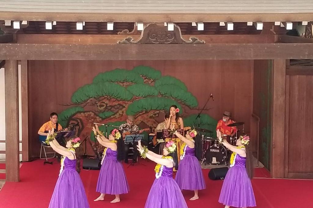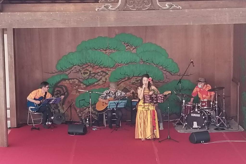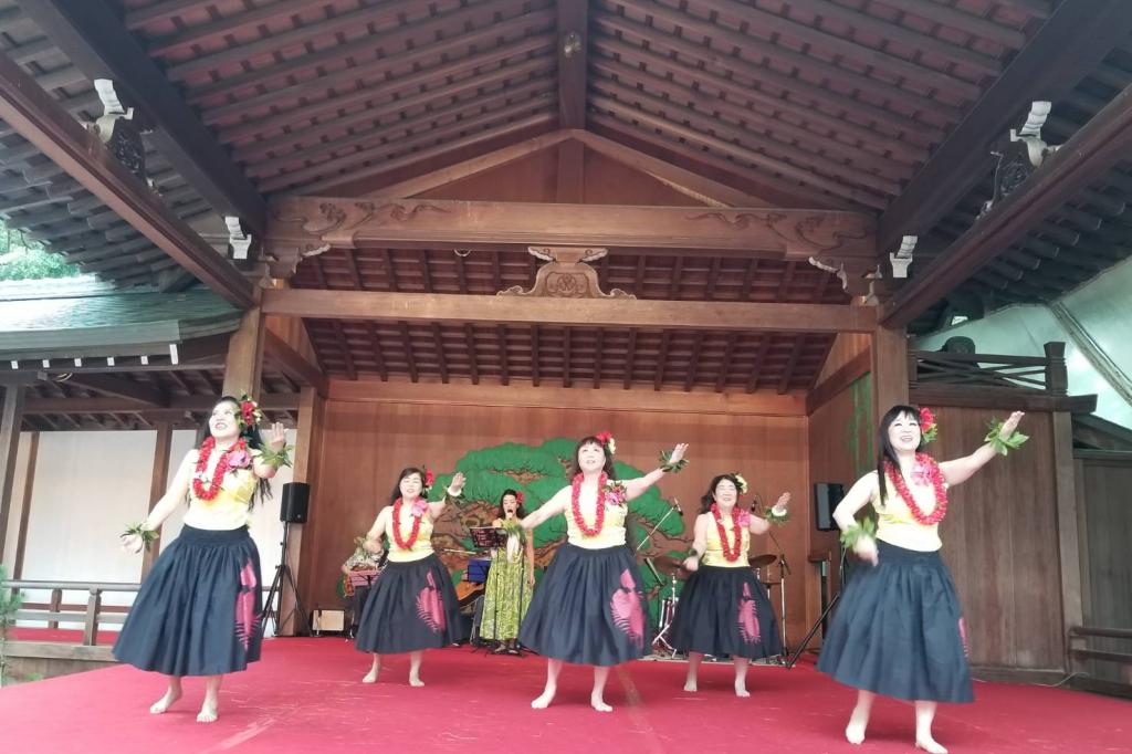 井上ケイアロハフラスタジオのフラダンサーたちが地元岡崎で活躍しているハワイアンバンドの生演奏の音色に乗せてフラを踊り、能楽堂にハワイ色の風をお送りします。ゆったりとした癒しのひと時をお楽しみ下さい。