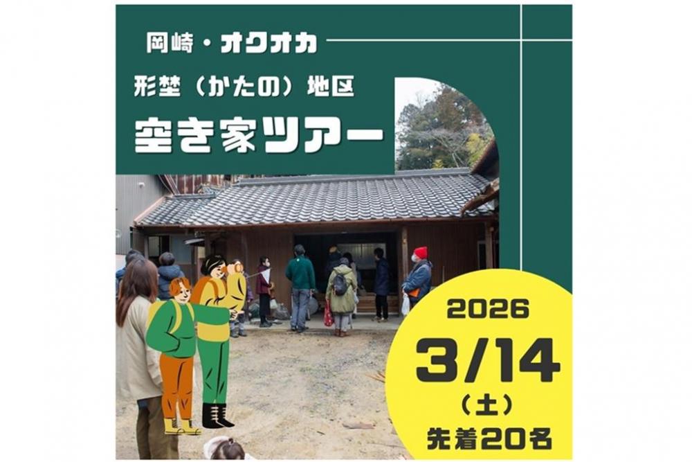 里山エリアでの暮らしを考えている方に向けて、形埜地区の空き家見学ツアーを2026年3月14日(土)に開催します。