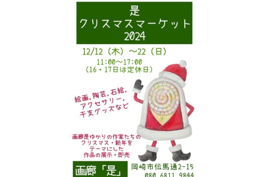 画廊是とゆかりのある作家たちによる、クリスマスや新年をテーマに創りあげた作品の展示・即売が行われます。