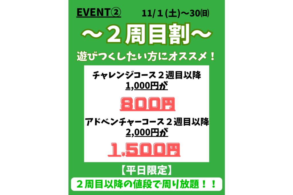 通常2周目体験する場合はチャレンジコース1,000円、アドベンチャーコース2,000円となっておりますが11月限定で2周目の金額が