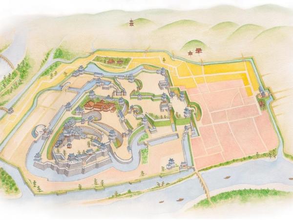 お城の全体構造を示した「設計図・配置図」のことです。