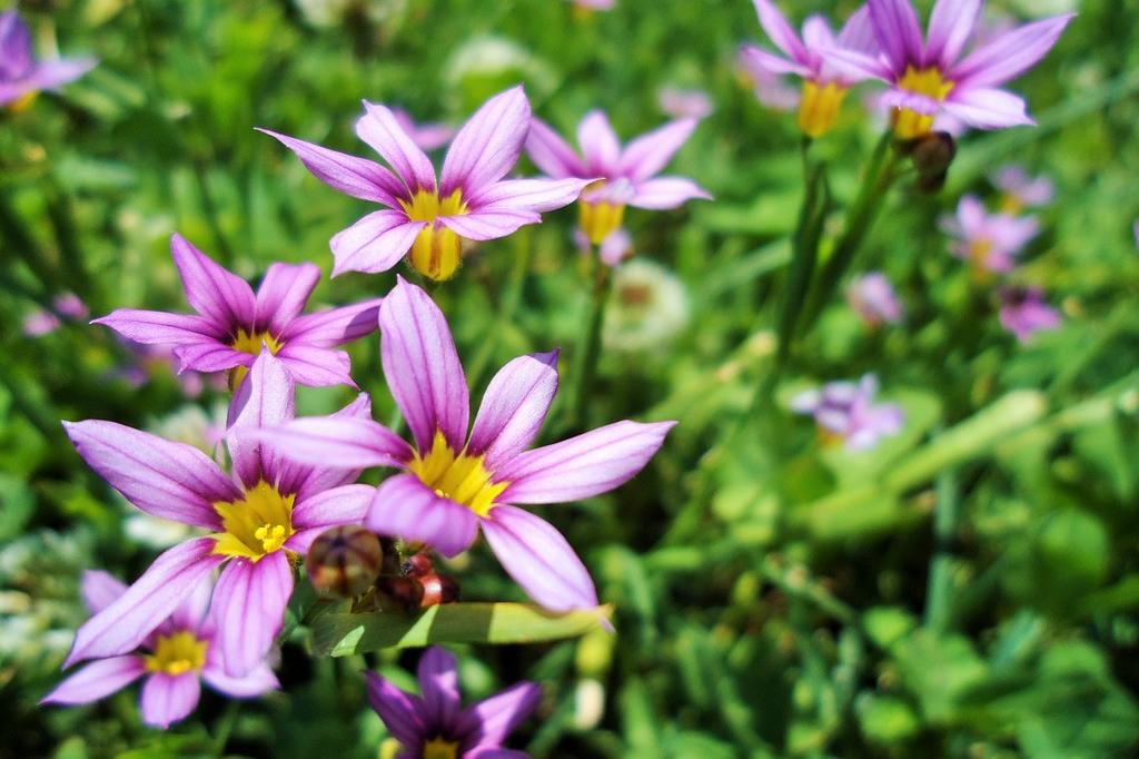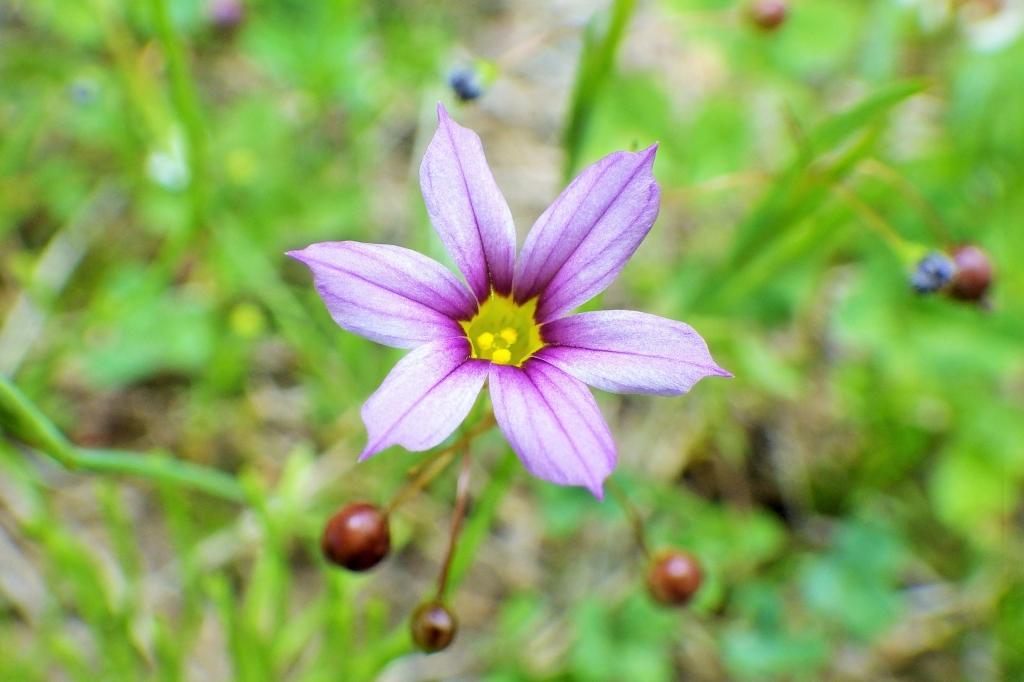 わんParkでは、花が小さく背が高いオオニワゼキショウと一緒に分布。芝生広場のいたるところで、群れ咲きます。アヤメの仲間だけに、5〜6月に咲く花はきれい。必見です。