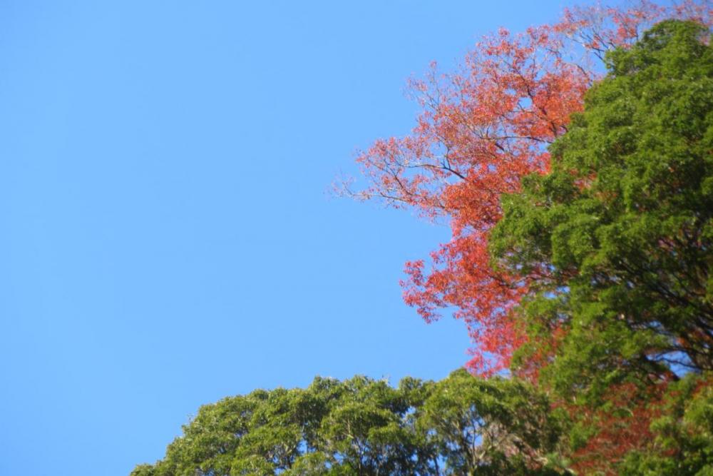 紅葉が色づき始めました。昨年より1週間ほど早いですが、日当たりによって、1本の木でも枝によって差があります。