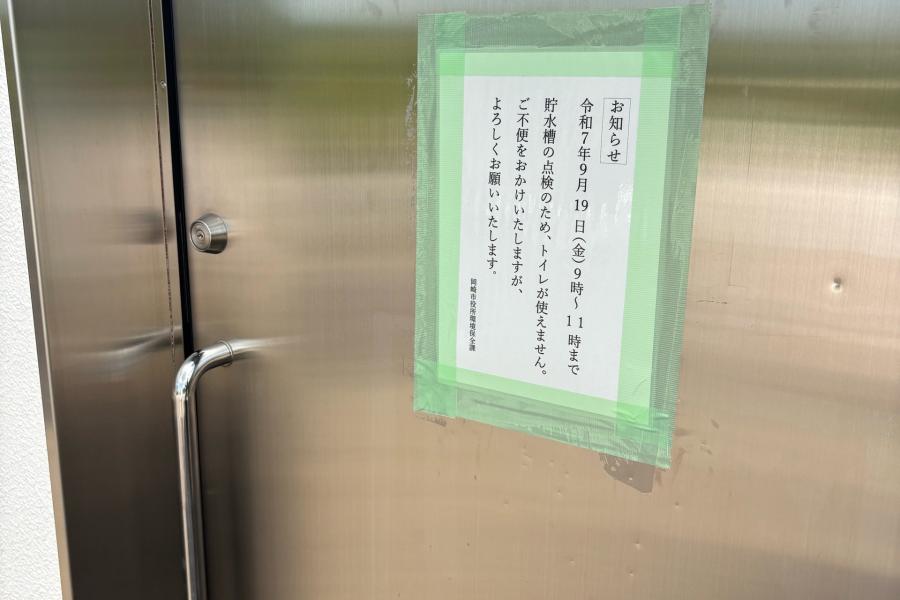 桑谷展望園地駐車場トイレ使用不可【9月19日(金) 9:00-11:00】 桑谷展望園地駐車場トイレ使用不可【9月19日(金) 9:00-11:00】 桑谷展望園地駐車場トイレですが、9月19日(金) 9:00-11:00(2時間)の期間、貯水槽及び給水ポンプ点検のため、使用ができません(水が出ません)。 御不便をおかけし大変申し訳ありません。御協力お願いいたします。 ツイート