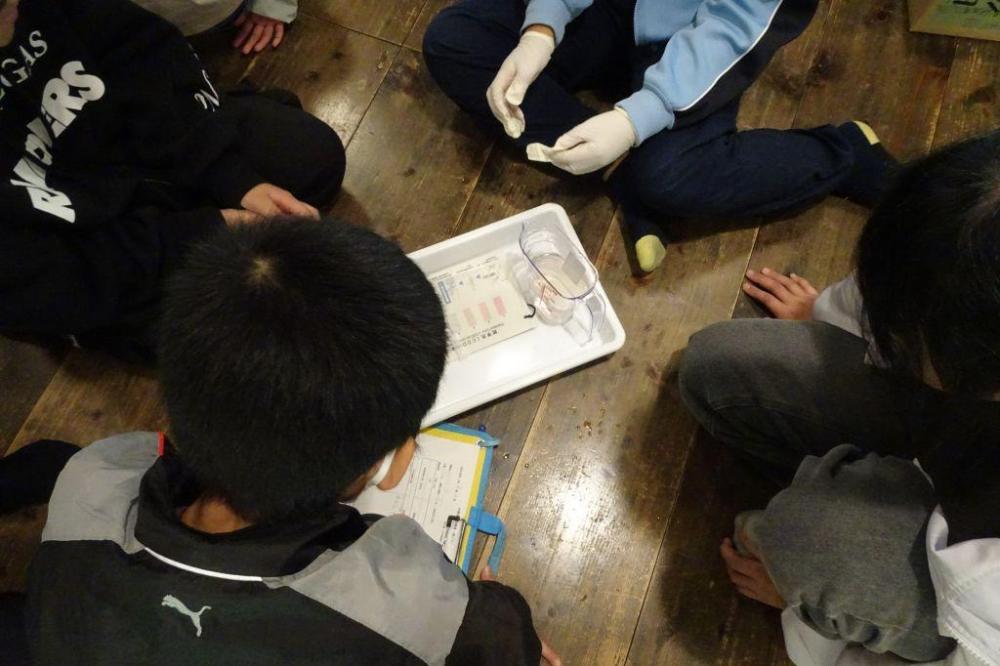 授業で小学校の近くの「前田川」での水質検査(CODパックテスト)を実施ししていますので
