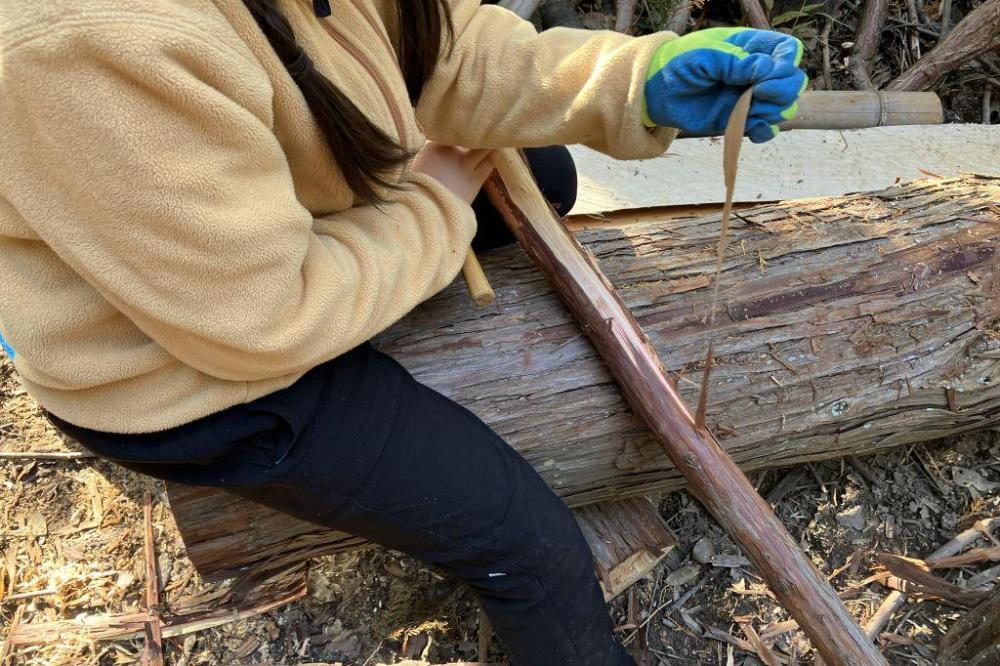 皮が全部めくれたら「ひのきのぼう」の完成!