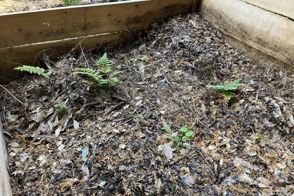 出来上がった腐葉土は、活用するために違う場所へ移しました。