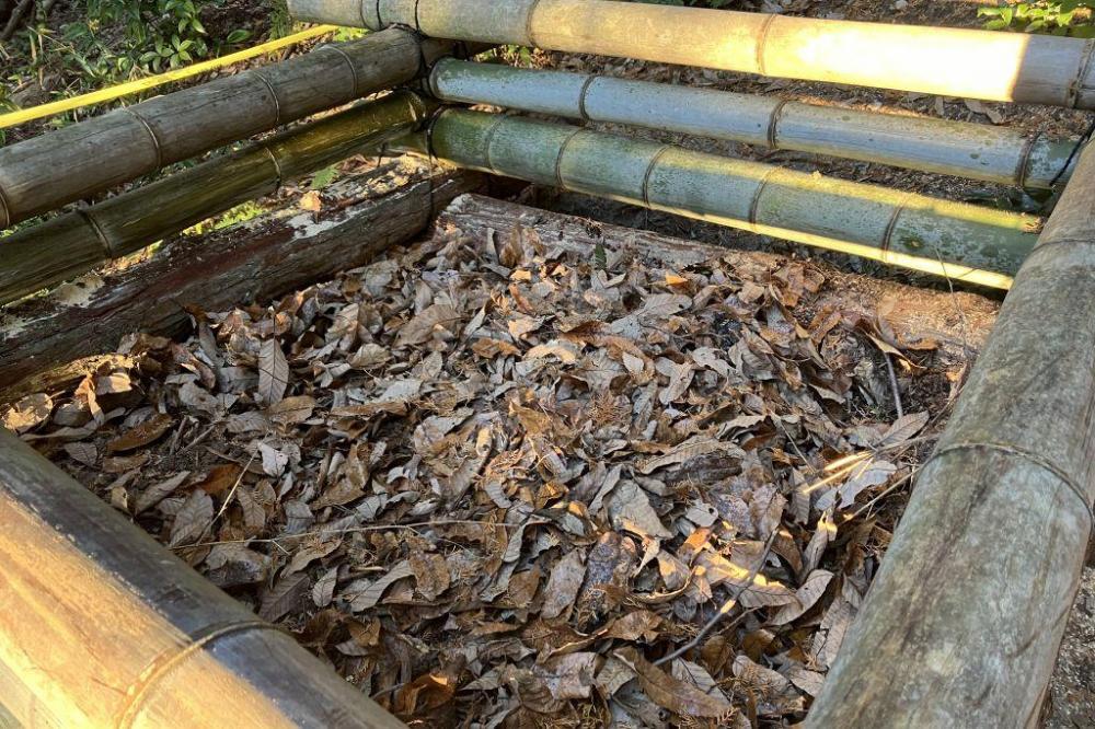 新たに作られた囲いの中に落ち葉を集めていきます。