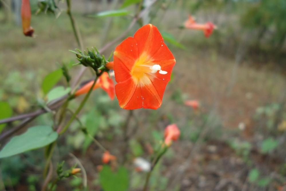 どこからともなくやってきたこの植物は、調整池駐車場の金網にからみついて自生。朝顔やサツマイモと同じヒルガオ科ですが、観賞用・食用のどちらでもなく、利用方法としてはグリーンカーテン(夏の遮光用)があるのだとか。