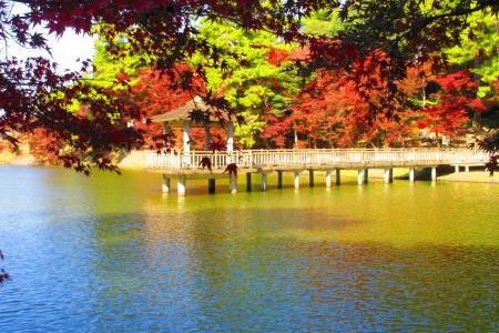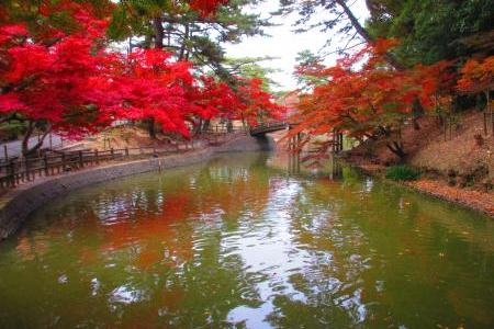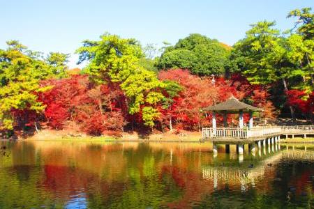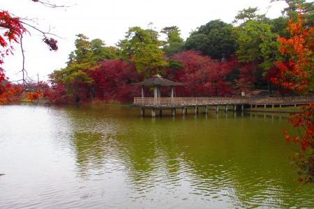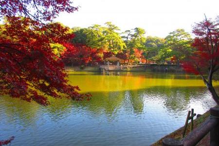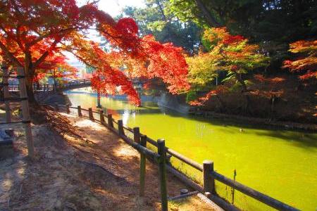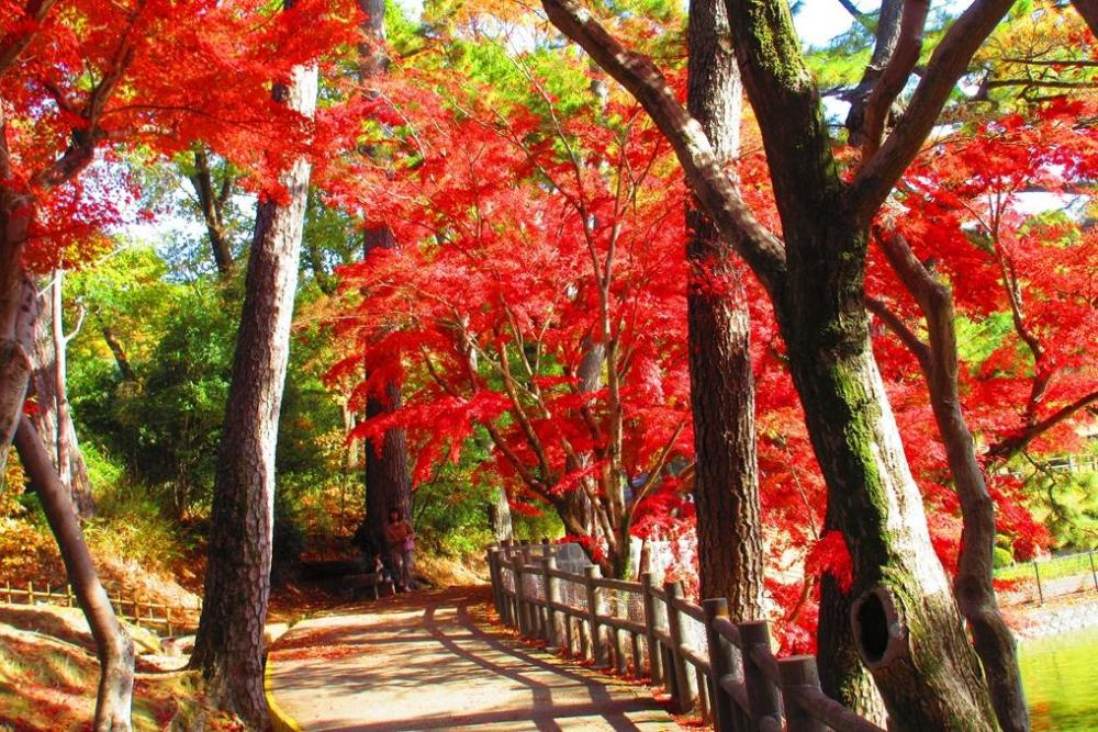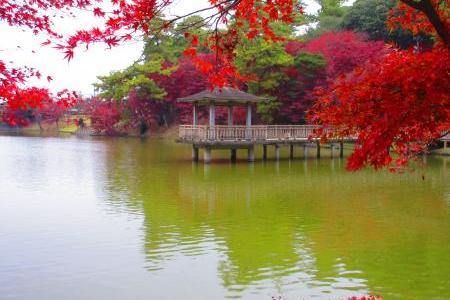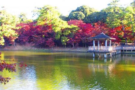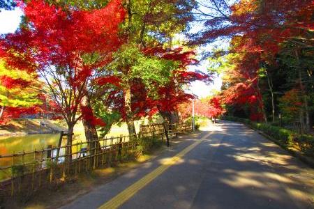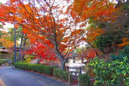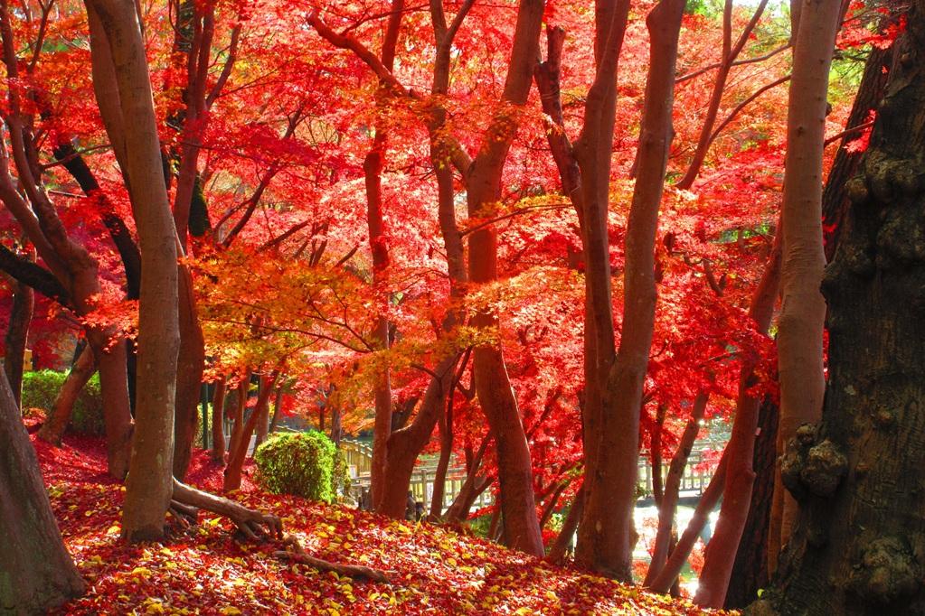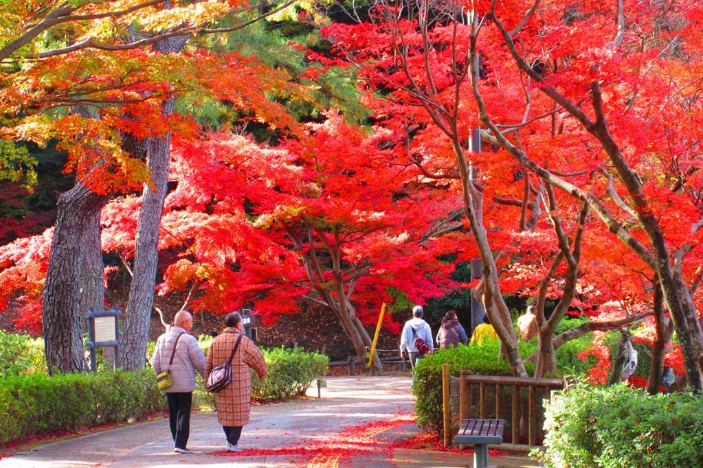 公園内の多くのモミジが色づき、見ごろを迎えています。