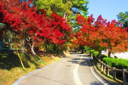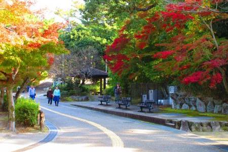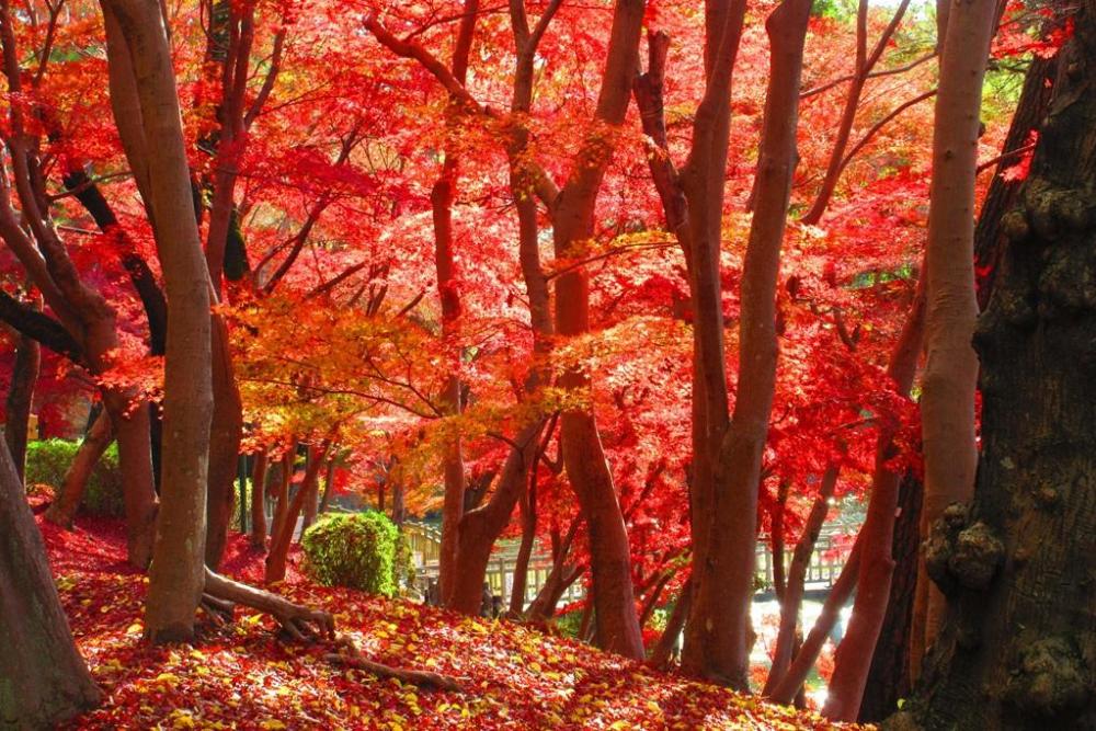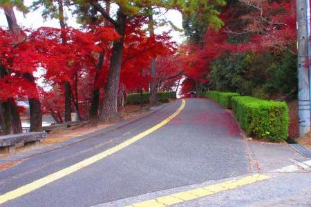 すでに少しずつ散り始めた木もあり、地面には美しいモミジのじゅうたんも広がっています。