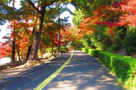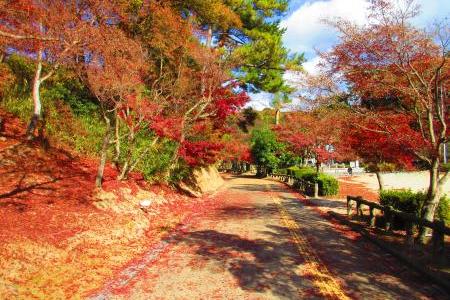 散り始めた木も少しずつ目立つようになり、地面には美しいモミジのじゅうたんも広がっています。