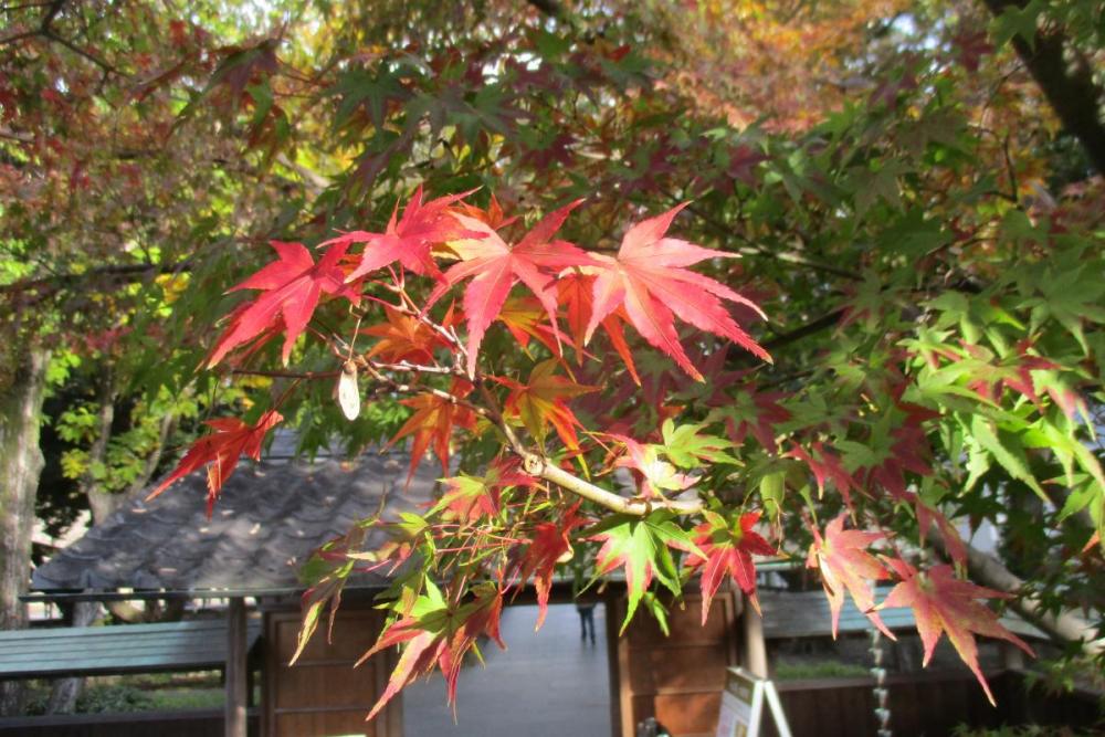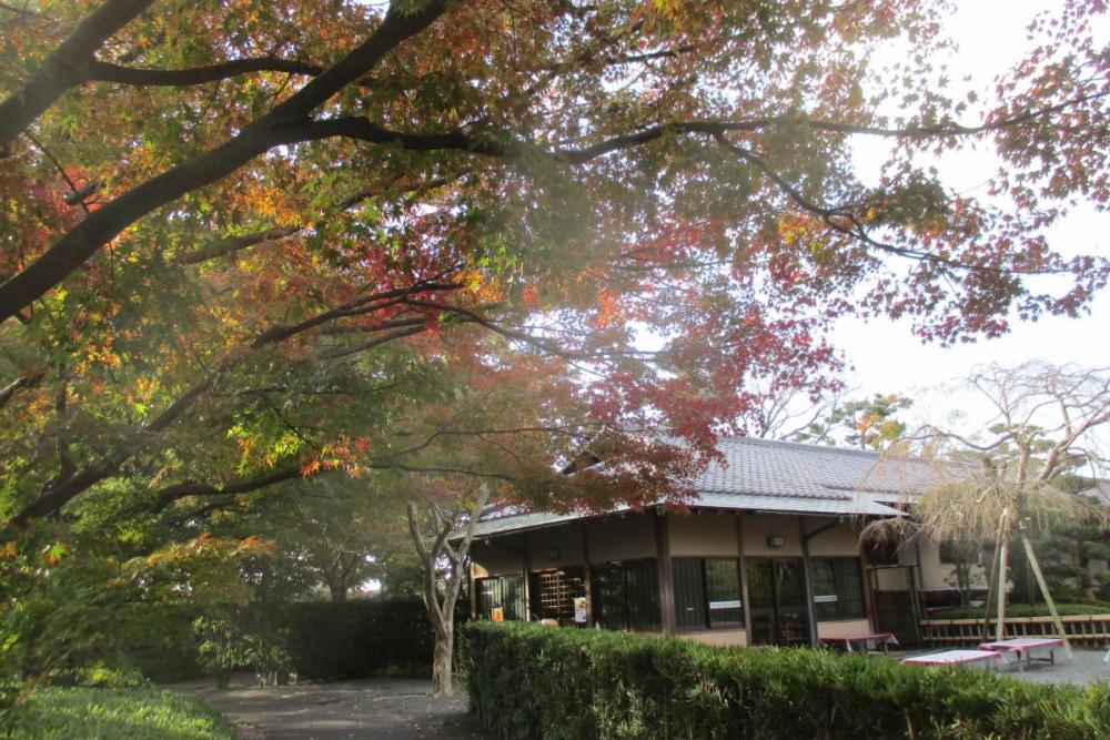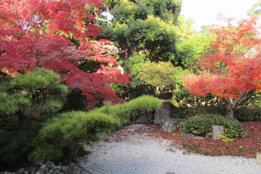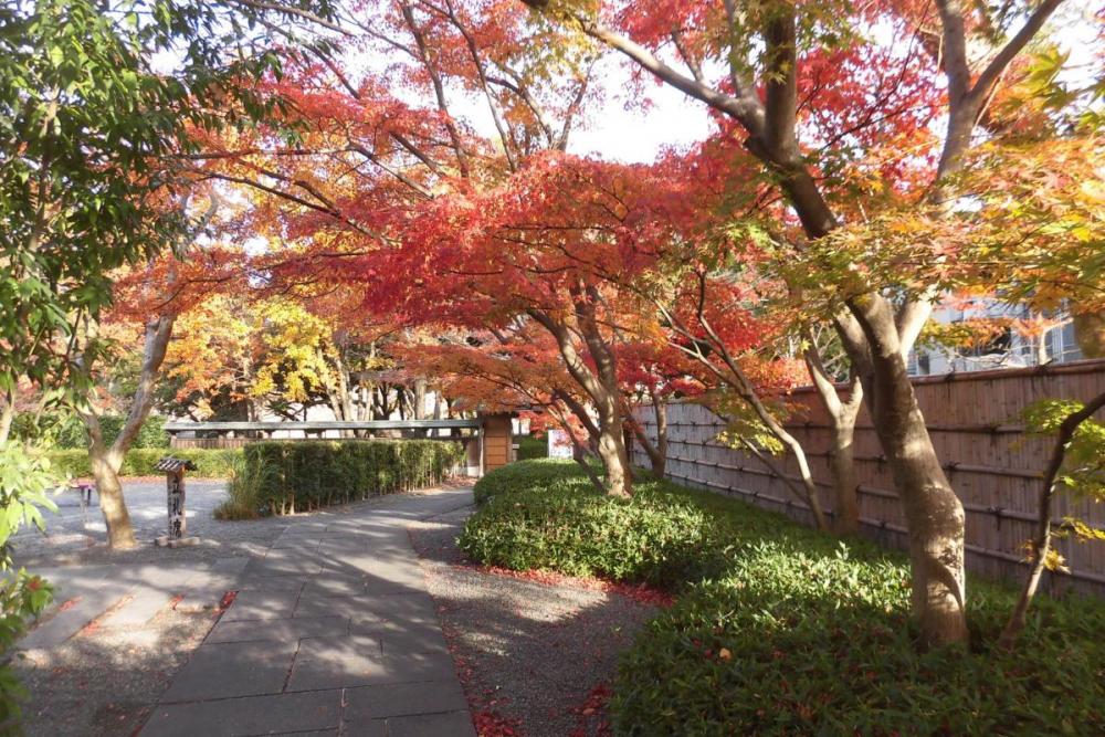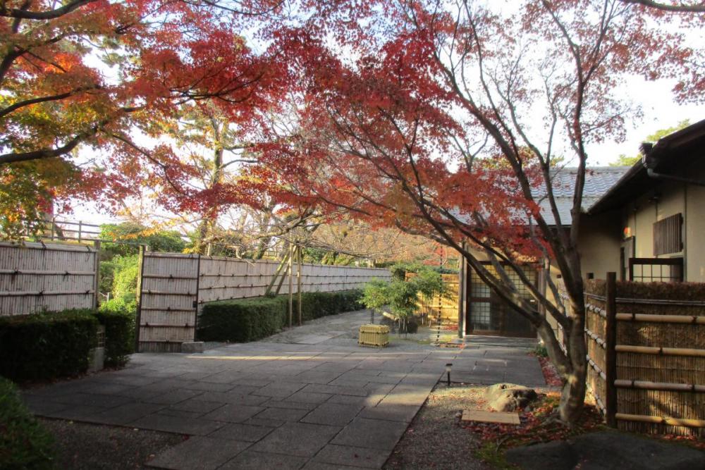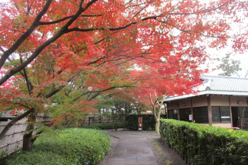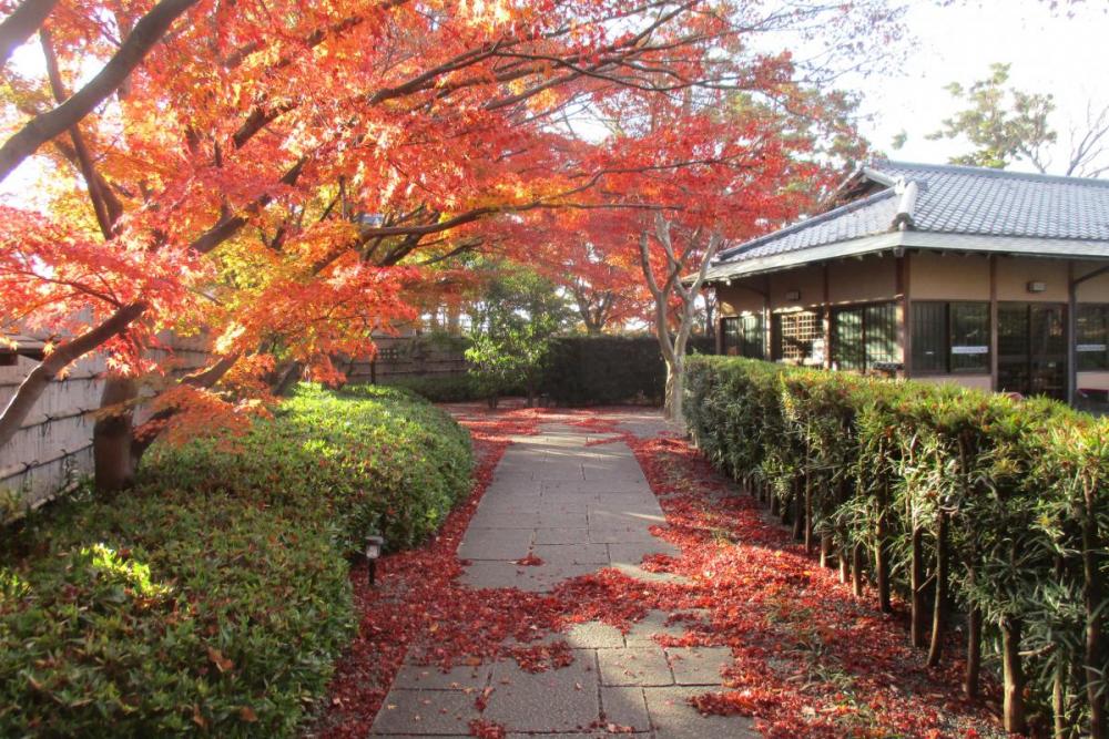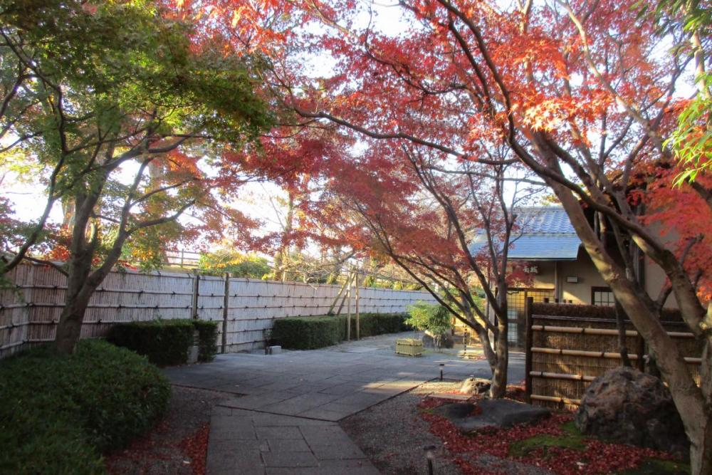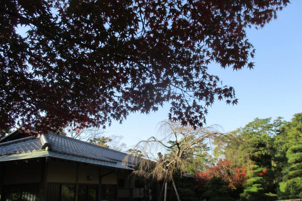 茶室の紅葉が進んでとても綺麗です!イチョウは落葉が進んできました。