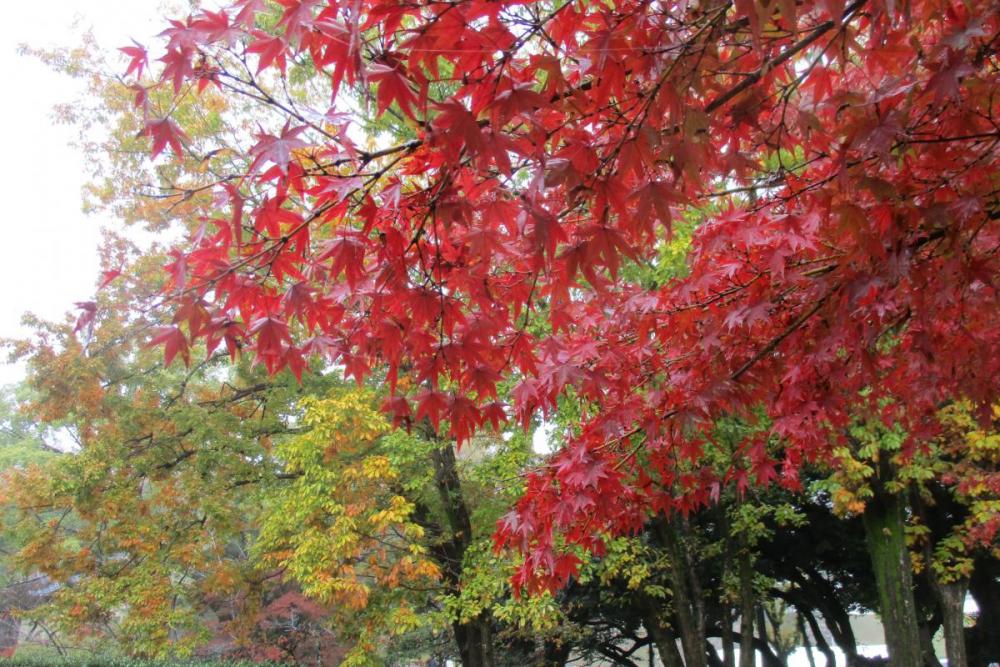 すっきりしない朝でしたが紅葉は見頃に近づいております。