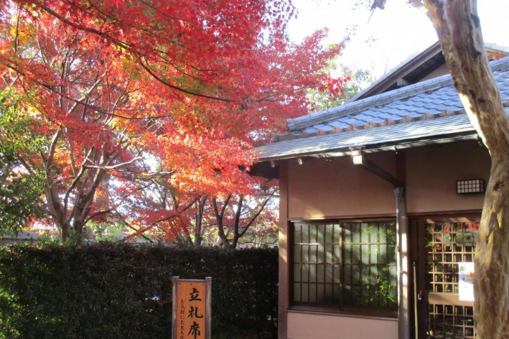 進みました。茶室お紅葉は見頃です。落葉の前にお早めに