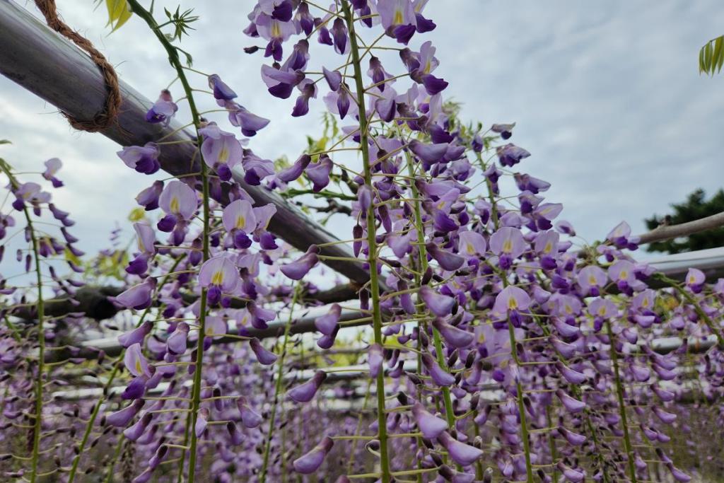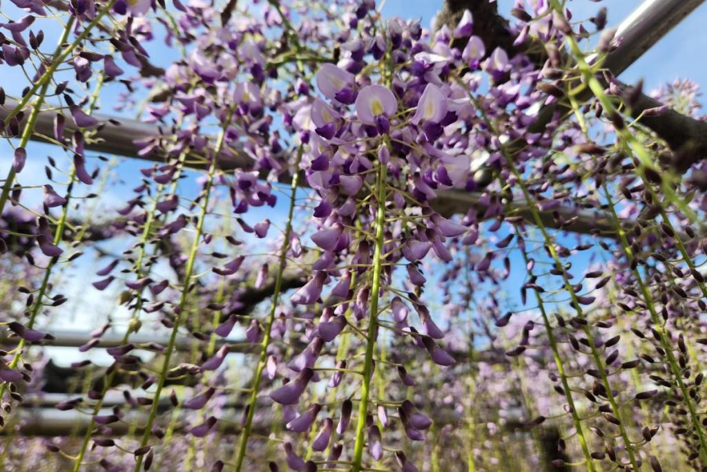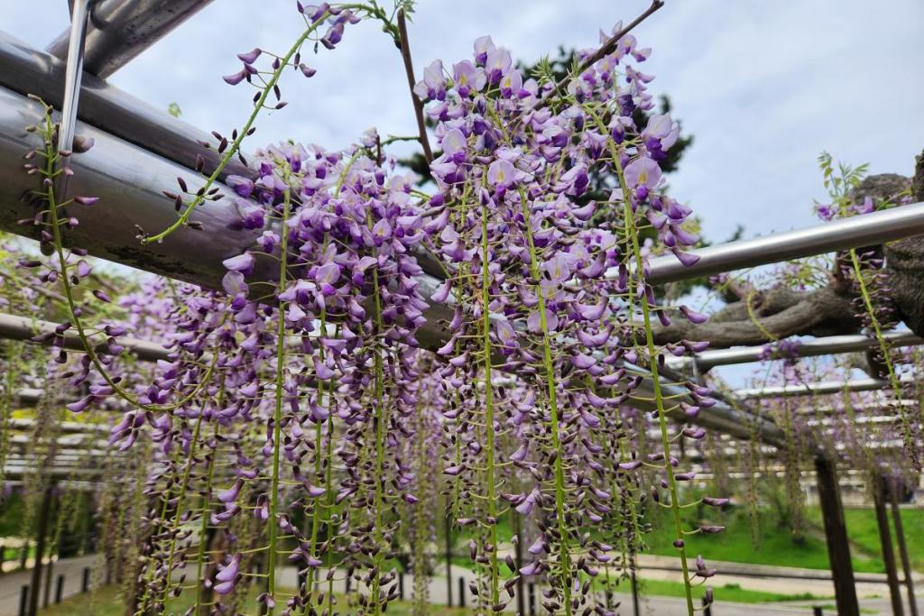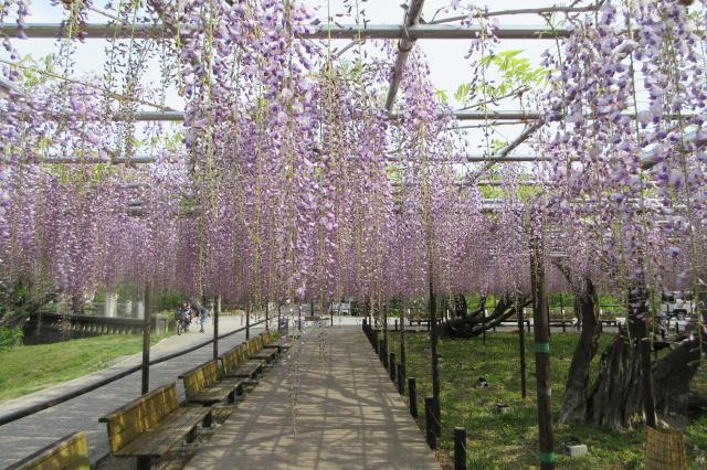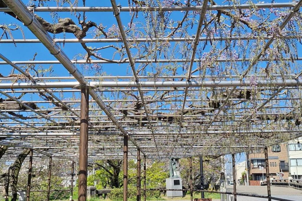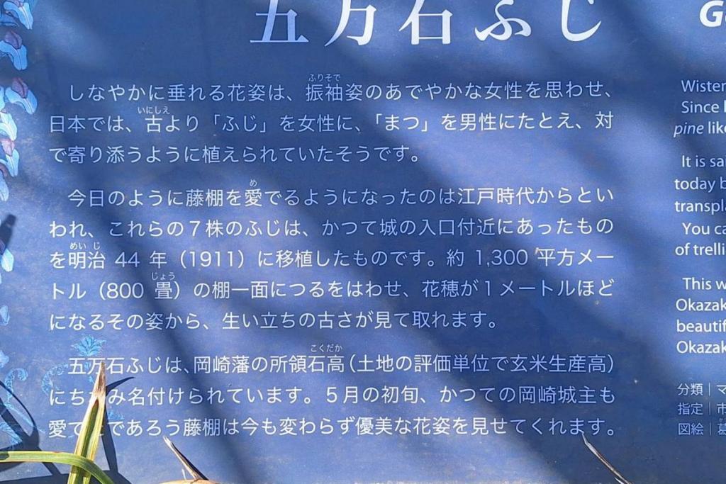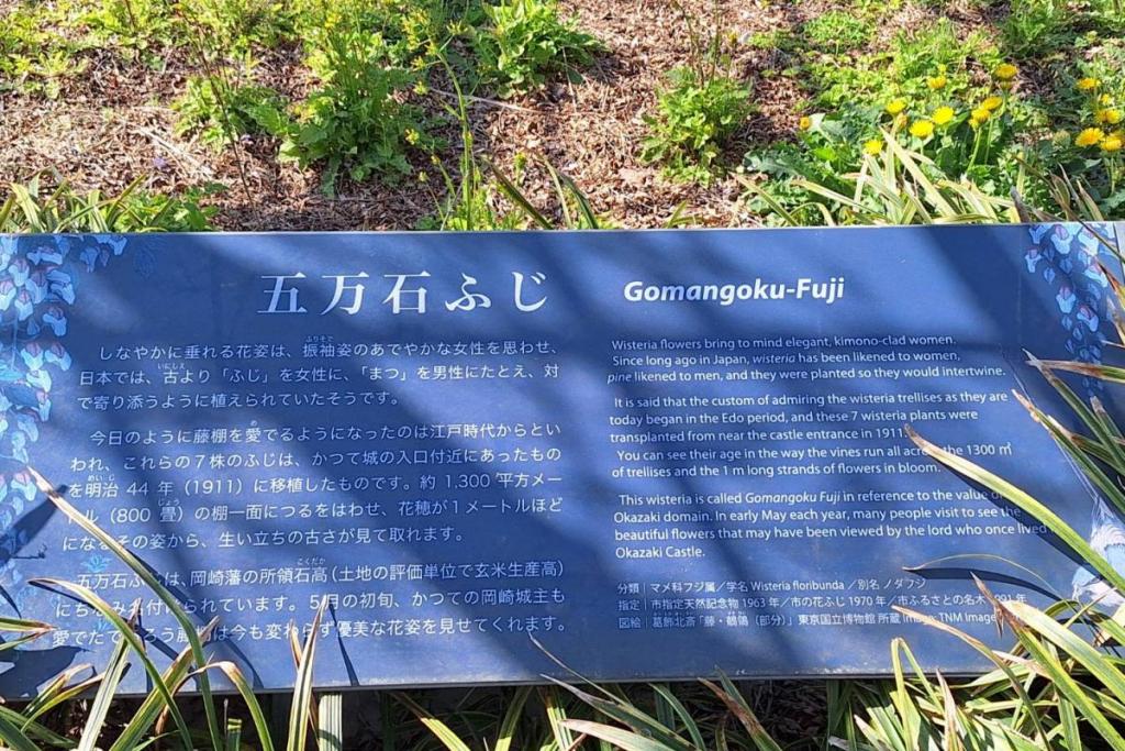 2026年の岡崎城公園五万石ふじの開花状況はこちら! 2026年4月17日(金)五万石ふじの開花状況 2026年4月17日(金)の五万石ふじの花房は「70cm程度」、開花は「50cm程度」です。 本日から夜間のライトアップが始まります。ぜひお越しください。 昨年の五万石ふじの開花状況はこちら 2026年4月16日(木)五万石ふじの開花状況 2026年4月16日(木)の五万石ふじの花房は「60cm程度」、開花は「40cm程度」です。 本日は天気が良く、藤を見る絶好な日です。 昨年の五万石ふじの開花状況はこちら 2026年4月15日(水)五万石ふじの開花状況 2026年4月15日(水)の五万石ふじの花房は「60cm程度」、開花は「30cm程度」です。 本日は雨ですが、雨とのコントラストで美しく咲く藤を堪能できます。 昨年の五万石ふじの開花状況はこちら 2026年4月14日(火)五万石ふじの開花状況 2026年4月14日(火)の五万石ふじの花房は「40cm程度」、開花は「20cm程度」です。 気候が良く、花房も順調に伸びております。 昨年の五万石ふじの開花状況はこちら 2026年4月13日(月)五万石ふじの開花状況 2026年4月13日(月)の五万石ふじの花房は「40cm程度」、開花は「20cm程度」です。 花房も伸びており、花も開花してきました。 昨年の五万石ふじの開花状況はこちら 2026年4月12日(日)五万石ふじの開花状況 2026年4月12日(日)の五万石ふじの花房は「40cm程度」、開花は「20cm程度」です。 今年は昨年よりも早く見ごろを迎えそうです。 昨年の五万石ふじの開花状況はこちら 2026年4月10日(金)五万石ふじの開花状況 2026年4月10日(金)の五万石ふじの花房は「25cm程度」です。 4月8日(水)より花房は長くなっています。 昨年の五万石ふじの開花状況はこちら 2026年4月8日(水)五万石ふじの開花状況 本日より開花状況を掲載していきます。 2026年4月8日(水)の五万石ふじの花房は「15cm程度」です。 昨年の五万石ふじの開花状況はこちら ツイート