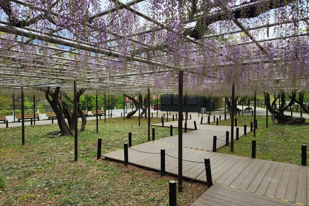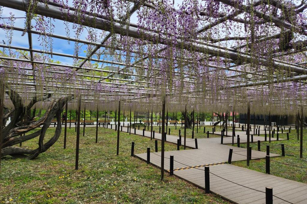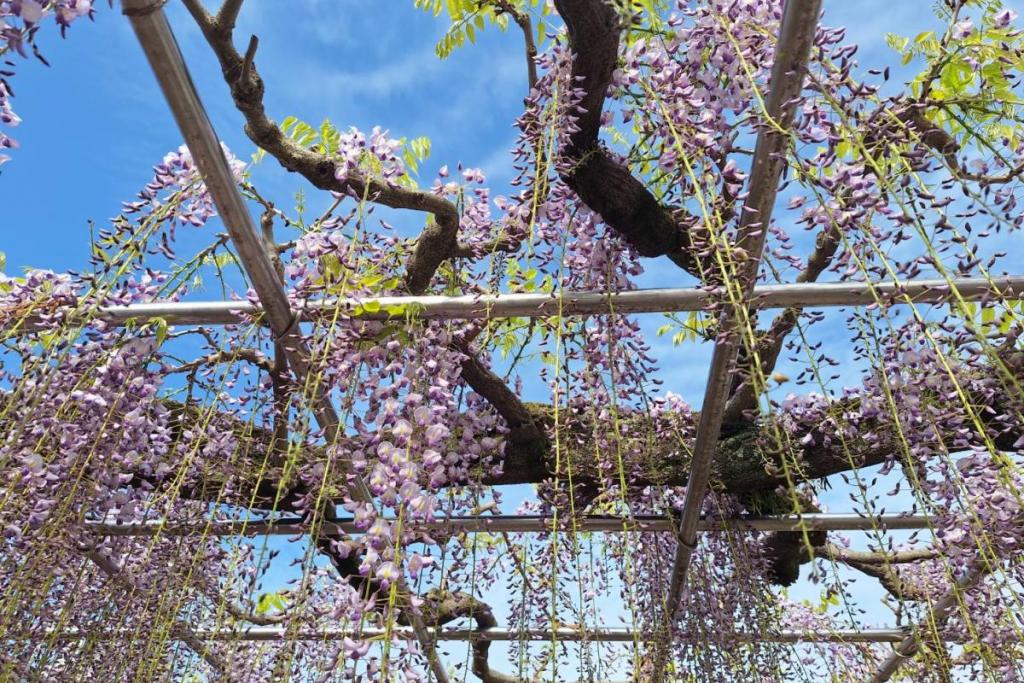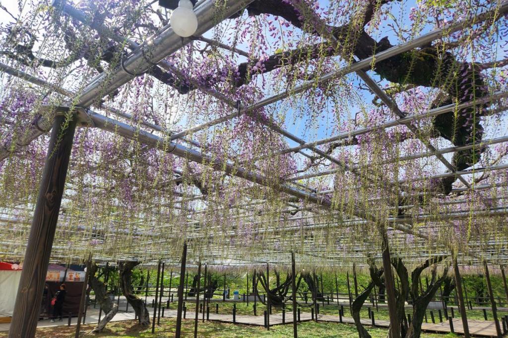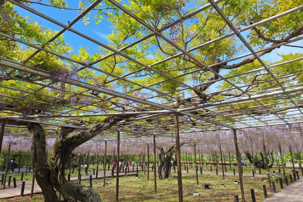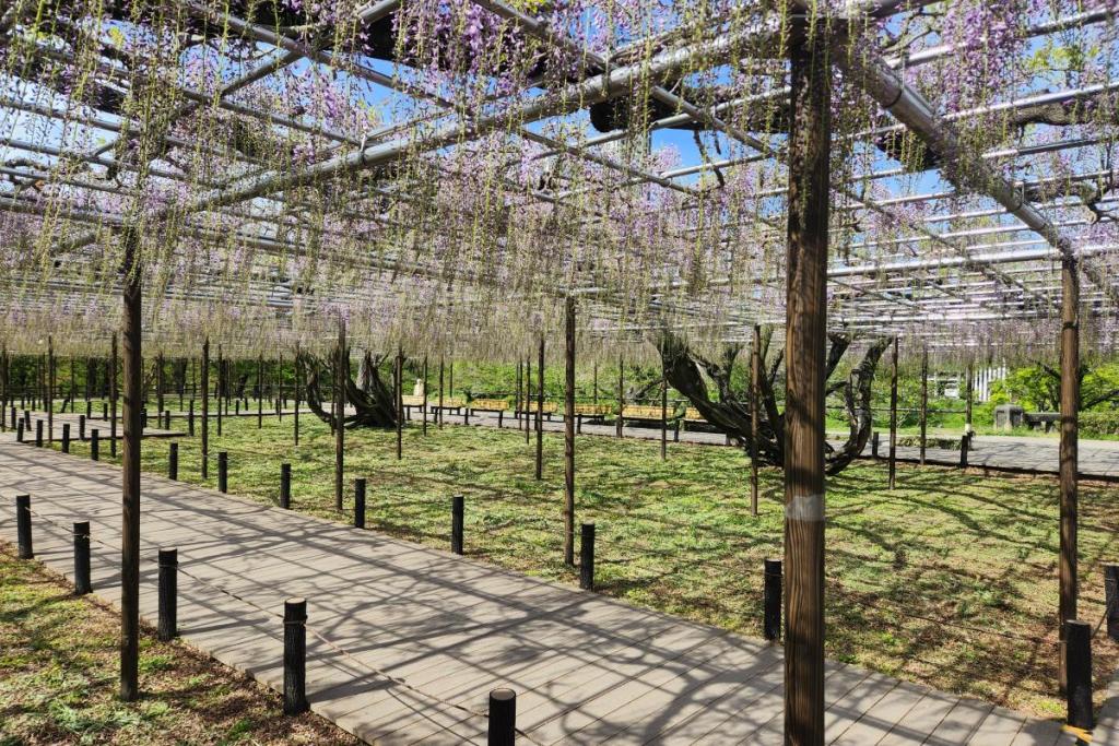 2026年の岡崎城公園五万石ふじの開花状況はこちら! 2026年4月17日(金)五万石ふじの開花状況 2026年4月17日(金)の五万石ふじの花房は「70cm程度」、開花は「50cm程度」です。 本日から夜間のライトアップが始まります。ぜひお越しください。 昨年の五万石ふじの開花状況はこちら 2026年4月16日(木)五万石ふじの開花状況 2026年4月16日(木)の五万石ふじの花房は「60cm程度」、開花は「40cm程度」です。 本日は天気が良く、藤を見る絶好な日です。 昨年の五万石ふじの開花状況はこちら 2026年4月15日(水)五万石ふじの開花状況 2026年4月15日(水)の五万石ふじの花房は「60cm程度」、開花は「30cm程度」です。 本日は雨ですが、雨とのコントラストで美しく咲く藤を堪能できます。 昨年の五万石ふじの開花状況はこちら 2026年4月14日(火)五万石ふじの開花状況 2026年4月14日(火)の五万石ふじの花房は「40cm程度」、開花は「20cm程度」です。 気候が良く、花房も順調に伸びております。 昨年の五万石ふじの開花状況はこちら 2026年4月13日(月)五万石ふじの開花状況 2026年4月13日(月)の五万石ふじの花房は「40cm程度」、開花は「20cm程度」です。 花房も伸びており、花も開花してきました。 昨年の五万石ふじの開花状況はこちら 2026年4月12日(日)五万石ふじの開花状況 2026年4月12日(日)の五万石ふじの花房は「40cm程度」、開花は「20cm程度」です。 今年は昨年よりも早く見ごろを迎えそうです。 昨年の五万石ふじの開花状況はこちら 2026年4月10日(金)五万石ふじの開花状況 2026年4月10日(金)の五万石ふじの花房は「25cm程度」です。 4月8日(水)より花房は長くなっています。 昨年の五万石ふじの開花状況はこちら 2026年4月8日(水)五万石ふじの開花状況 本日より開花状況を掲載していきます。 2026年4月8日(水)の五万石ふじの花房は「15cm程度」です。 昨年の五万石ふじの開花状況はこちら ツイート