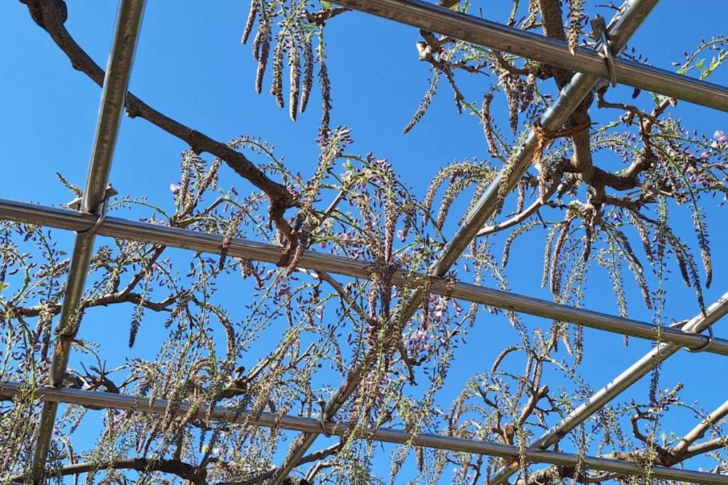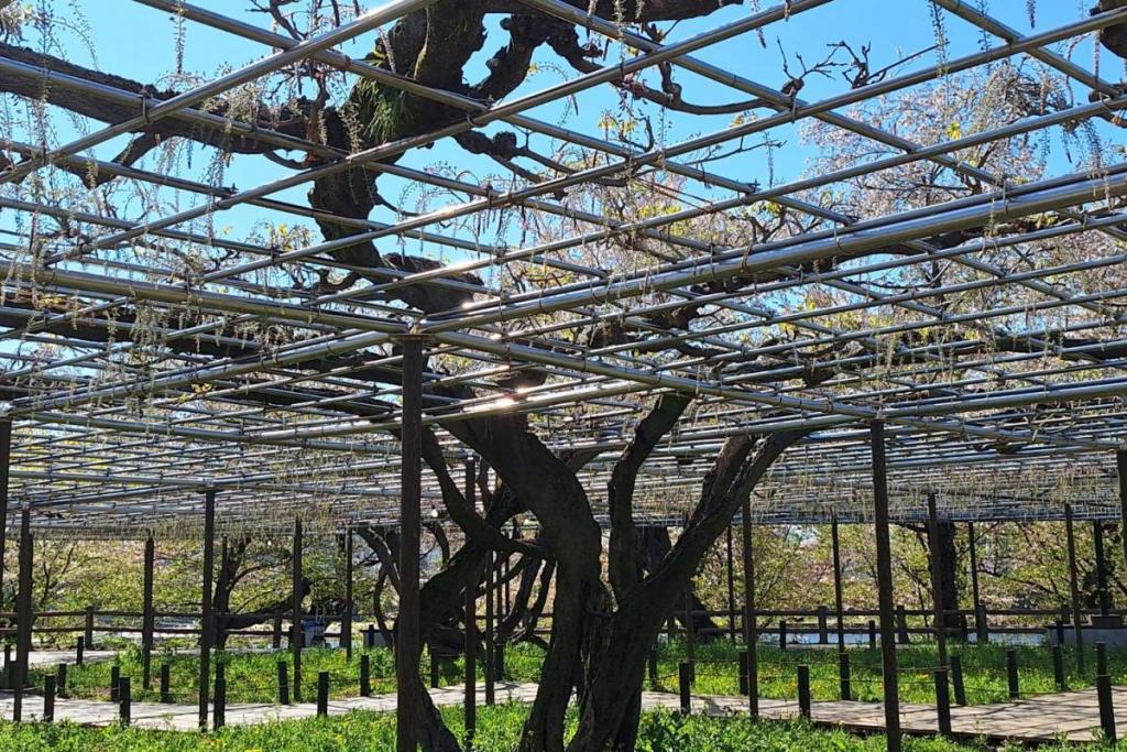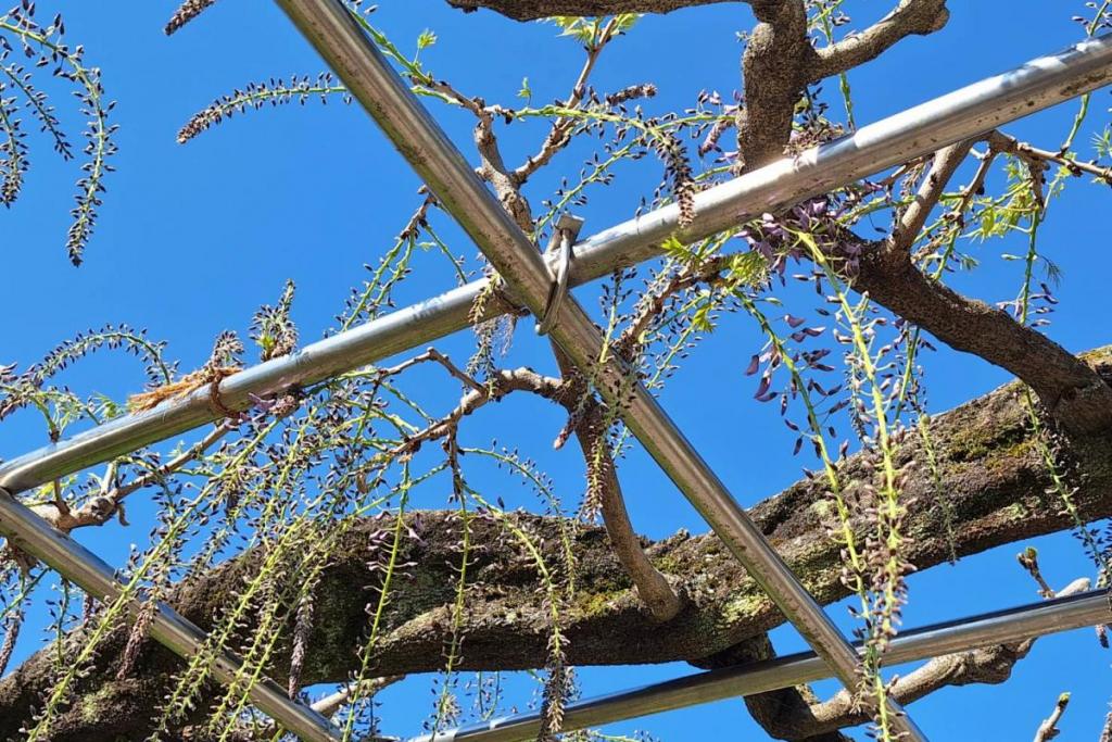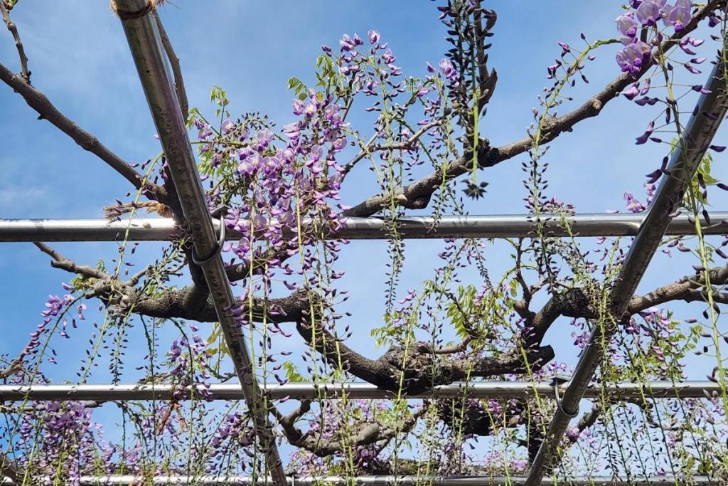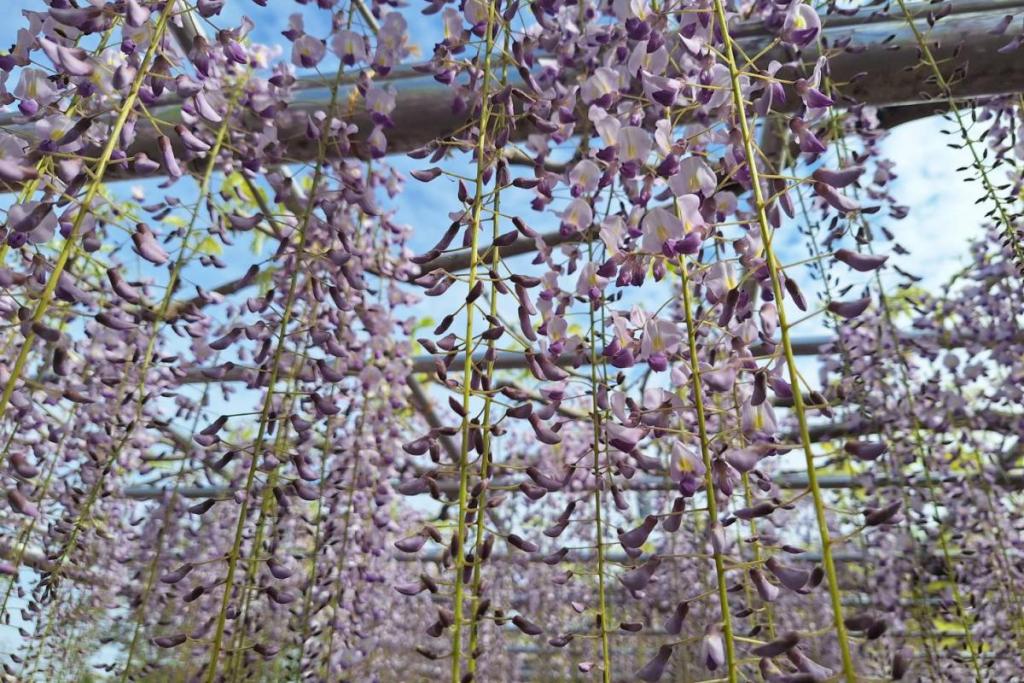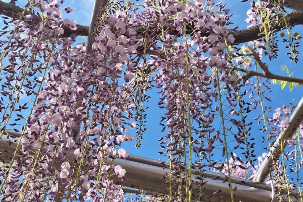 2026年の岡崎城公園五万石ふじの開花状況はこちら! 2026年4月17日(金)五万石ふじの開花状況 2026年4月17日(金)の五万石ふじの花房は「70cm程度」、開花は「50cm程度」です。 本日から夜間のライトアップが始まります。ぜひお越しください。 昨年の五万石ふじの開花状況はこちら 2026年4月16日(木)五万石ふじの開花状況 2026年4月16日(木)の五万石ふじの花房は「60cm程度」、開花は「40cm程度」です。 本日は天気が良く、藤を見る絶好な日です。 昨年の五万石ふじの開花状況はこちら 2026年4月15日(水)五万石ふじの開花状況 2026年4月15日(水)の五万石ふじの花房は「60cm程度」、開花は「30cm程度」です。 本日は雨ですが、雨とのコントラストで美しく咲く藤を堪能できます。 昨年の五万石ふじの開花状況はこちら 2026年4月14日(火)五万石ふじの開花状況 2026年4月14日(火)の五万石ふじの花房は「40cm程度」、開花は「20cm程度」です。 気候が良く、花房も順調に伸びております。 昨年の五万石ふじの開花状況はこちら 2026年4月13日(月)五万石ふじの開花状況 2026年4月13日(月)の五万石ふじの花房は「40cm程度」、開花は「20cm程度」です。 花房も伸びており、花も開花してきました。 昨年の五万石ふじの開花状況はこちら 2026年4月12日(日)五万石ふじの開花状況 2026年4月12日(日)の五万石ふじの花房は「40cm程度」、開花は「20cm程度」です。 今年は昨年よりも早く見ごろを迎えそうです。 昨年の五万石ふじの開花状況はこちら 2026年4月10日(金)五万石ふじの開花状況 2026年4月10日(金)の五万石ふじの花房は「25cm程度」です。 4月8日(水)より花房は長くなっています。 昨年の五万石ふじの開花状況はこちら 2026年4月8日(水)五万石ふじの開花状況 本日より開花状況を掲載していきます。 2026年4月8日(水)の五万石ふじの花房は「15cm程度」です。 昨年の五万石ふじの開花状況はこちら ツイート