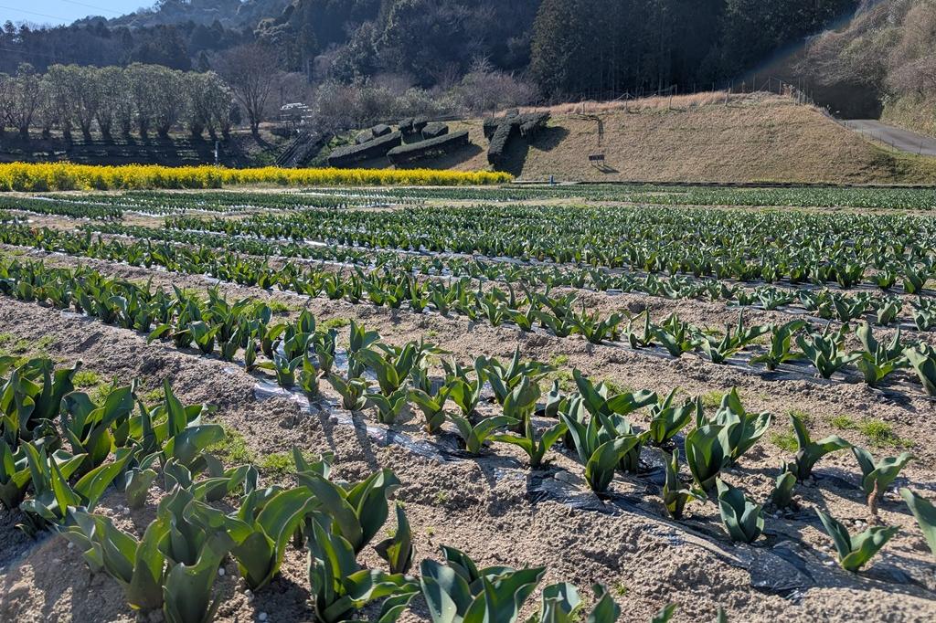 まだ一面緑ですが蕾が増え、色づき始めています。